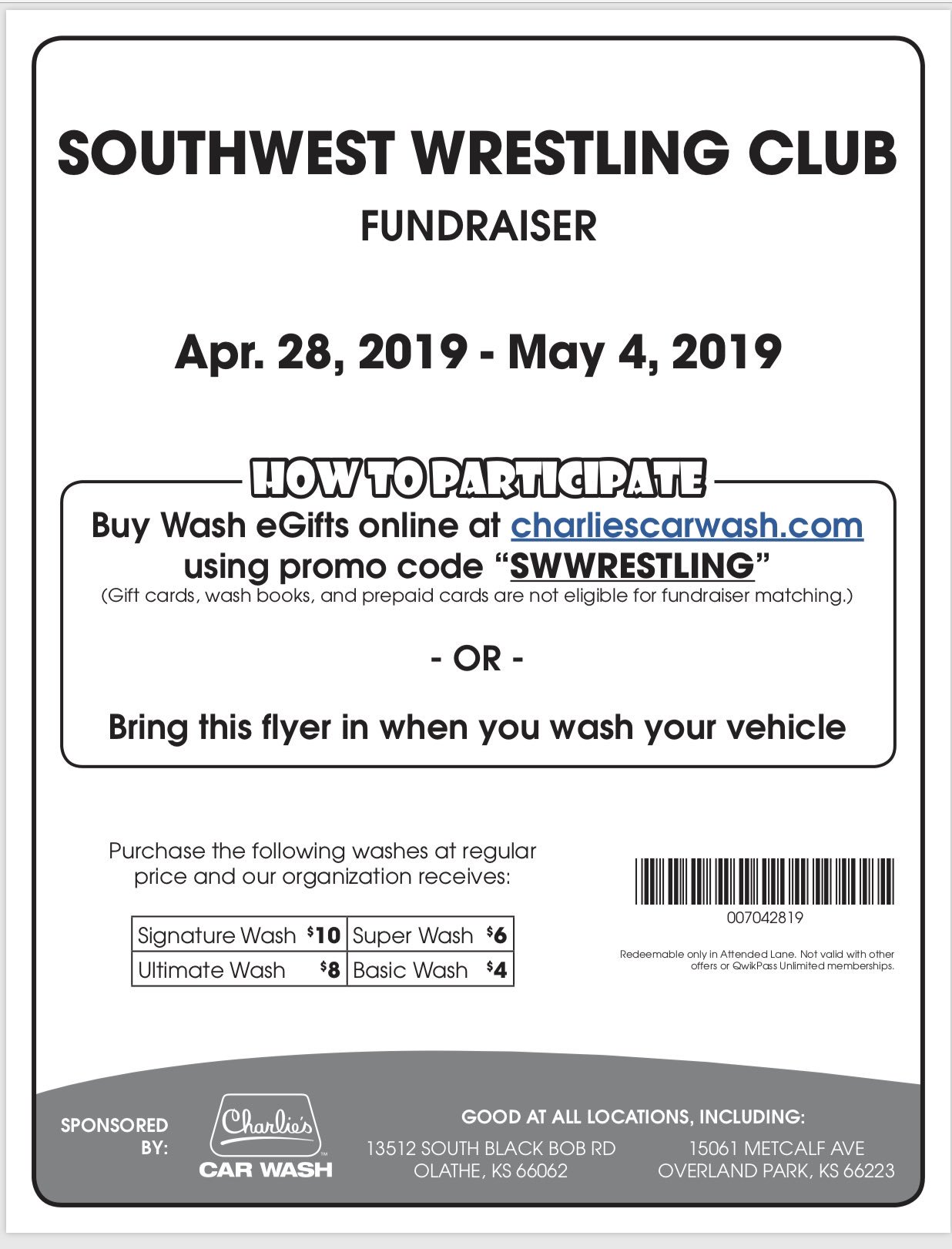 Coach Parks On Twitter Starts Tomorrow Fundraising For Our Summer Wrestling Program Take The Code To Wash Your Car At Charlie S Car Wash In Olathe And Overland Park Https T Co Yyedo6pwqd Twitter